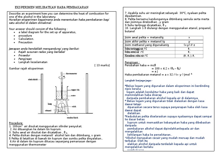 Eksperimen Melibatkan Haba Pembakaran