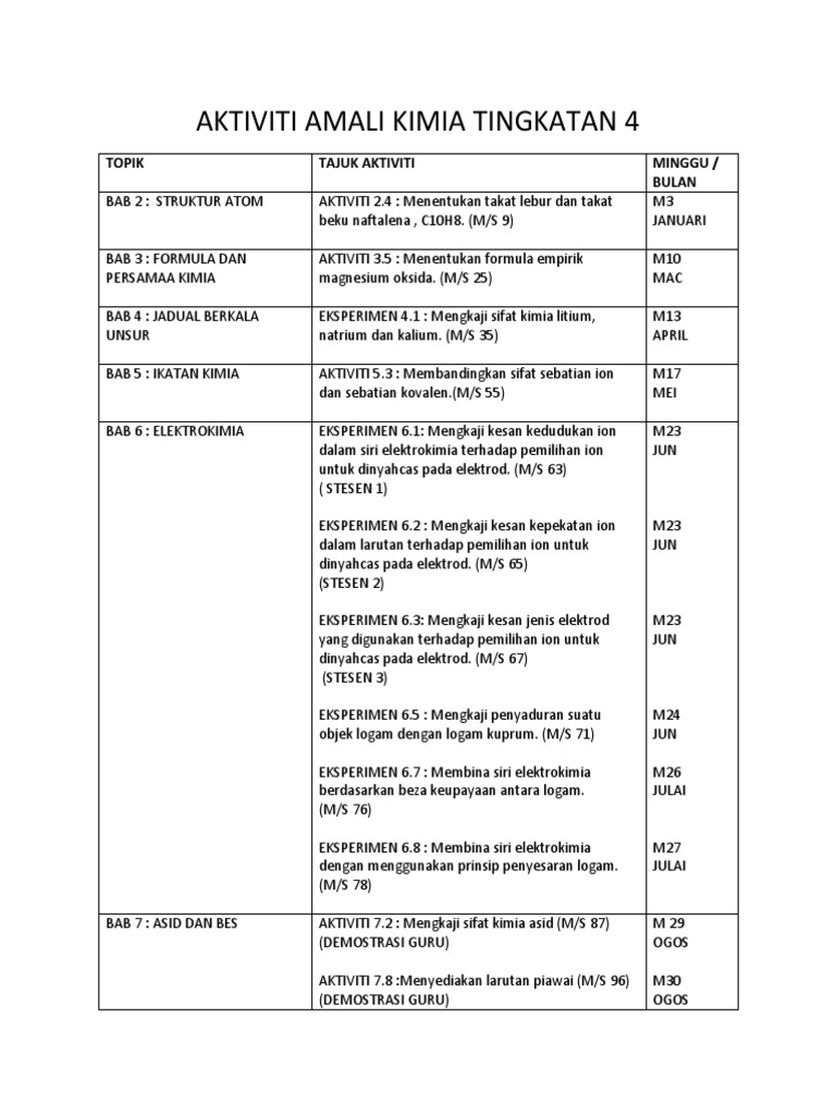 T4 Senarai Eksperimen Aktiviti Dan Bahan Biologi Tingkatan 4 Pdf