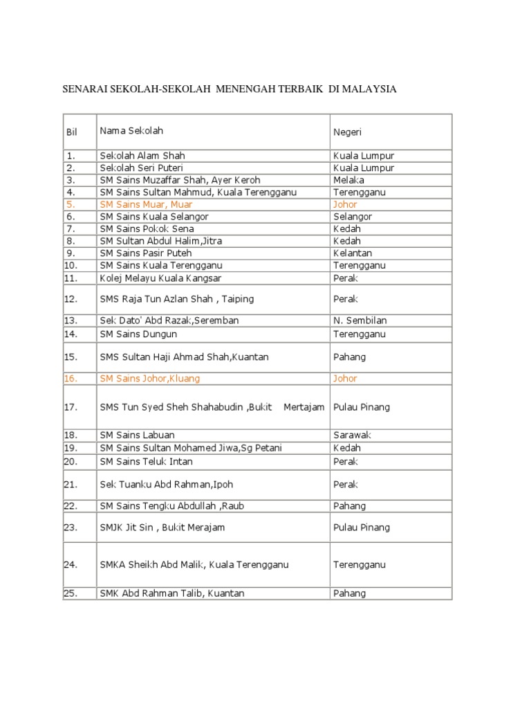 Senarai Sekolah Pilihan Di Malaysia