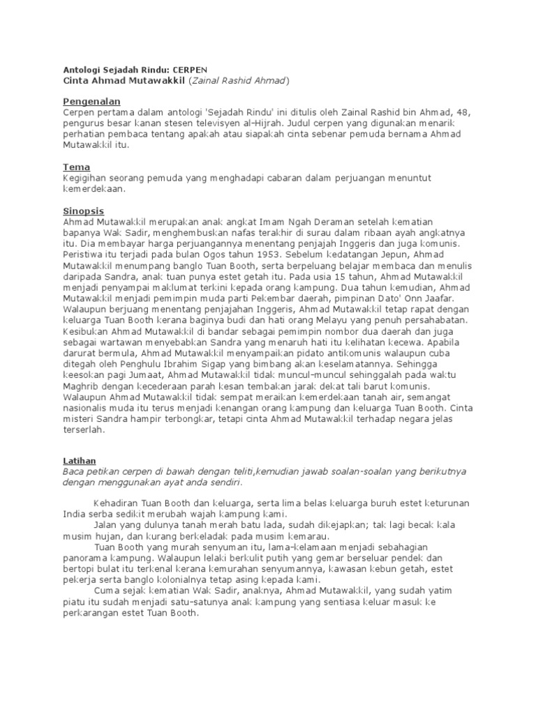 Sinopsis Cerpen Cinta Ahmad Mutawakkil