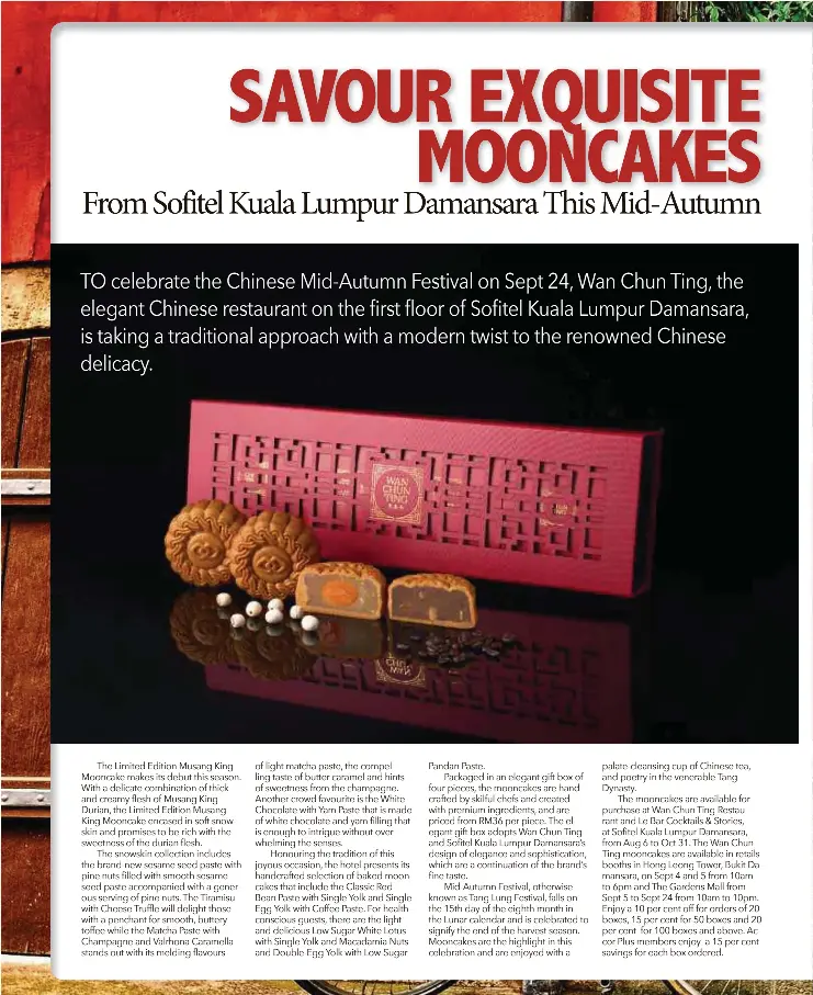 Pressreader New Straits Times 2018 09 13 Savour Exquisite Mooncakes From Sofitel Kuala Lumpur Damansara This Mid Autumn