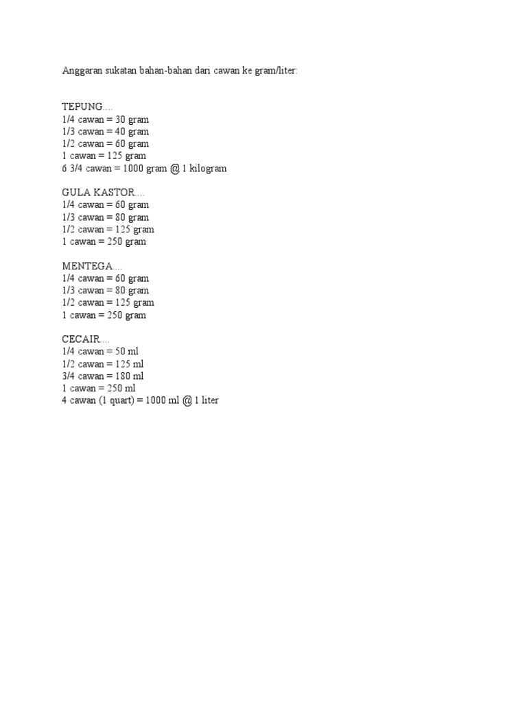 Rasa Panduan Sukatan Cawan Ke Gram Untuk Gula Halus Facebook