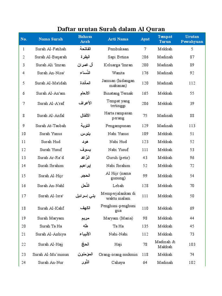 Info Senarai Surah Dalam Al Quran